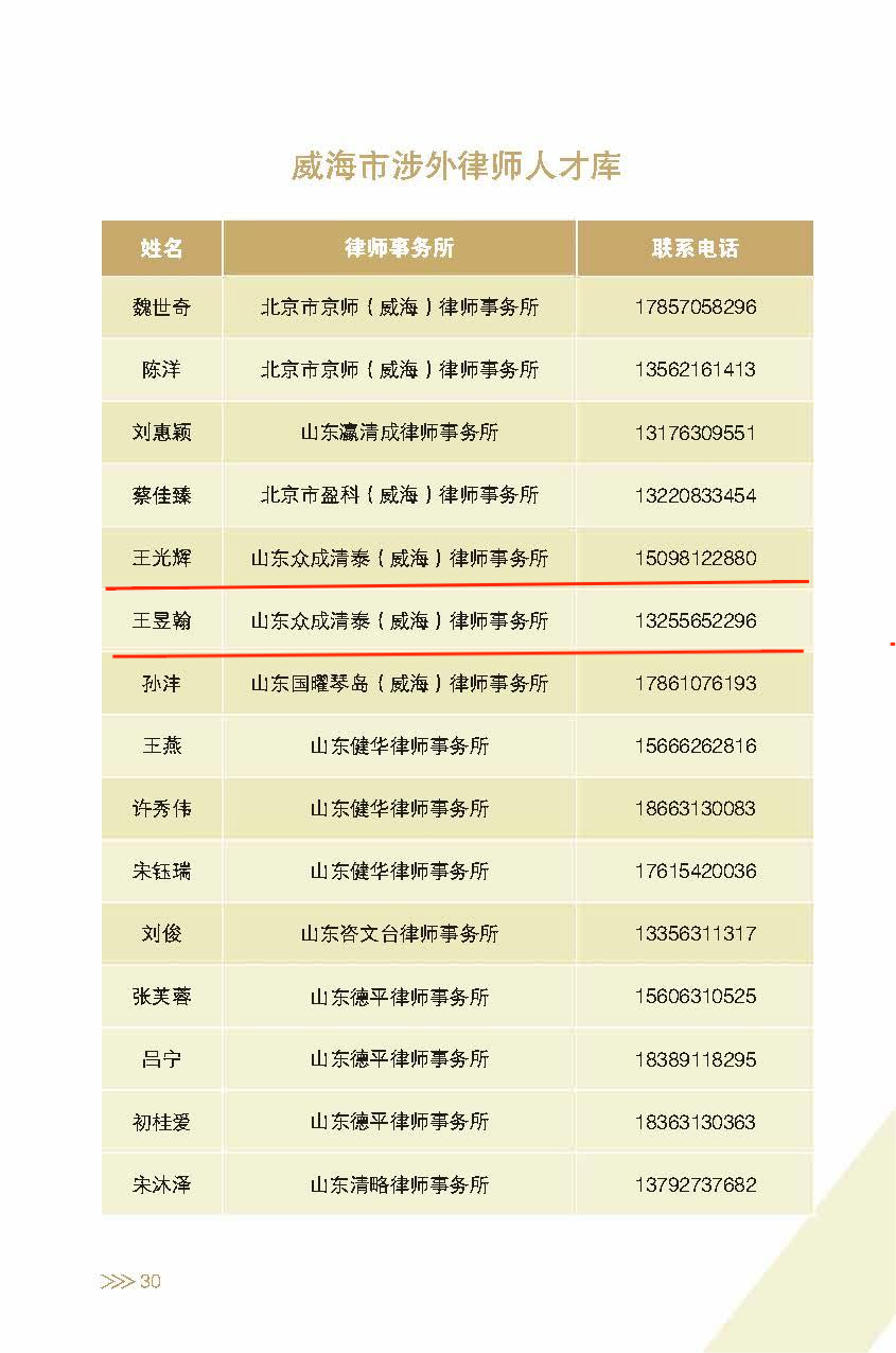 威海所主任王光辉、律师王昱翰、滕蕾均入选“威海市涉外法律人才库”,他们以专业铸品牌,以责任显担当,大力提升涉外法律服务能力,主动参与企业涉外经营合规体系建设,当好防范风险的“预警员”、化解纠纷的“调解员”,引导企业树牢“合规先行”理念,用好法律服务产品,及时反馈法律需求,提高涉外经营风险防范能力。