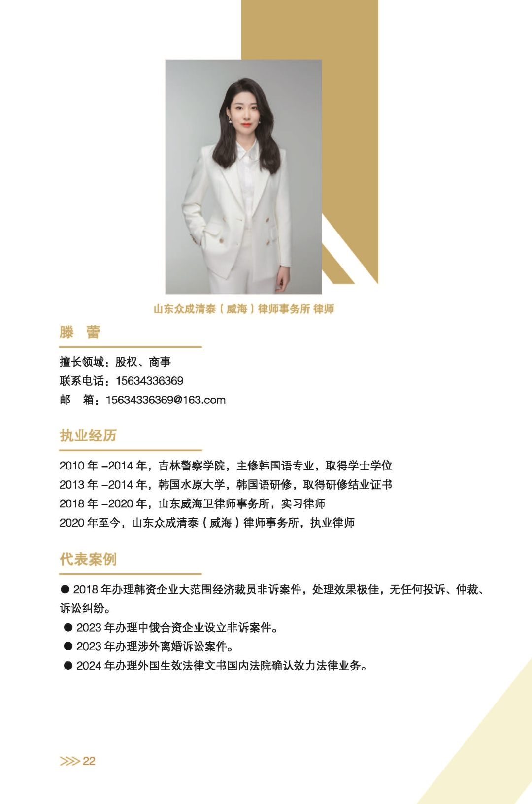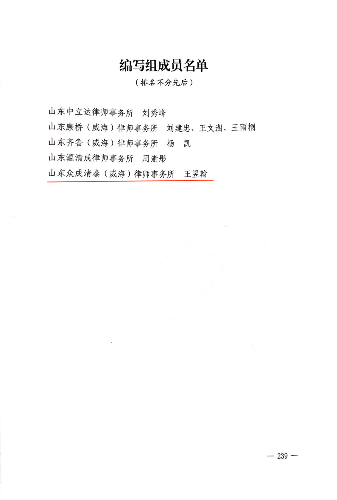 众成清泰威海所合规事业部主任王昱翰参与编写完成《威海市企业出海国别投资法律风险防范指引》和《威海市涉外企业合规指引——外贸篇(2024)》,为企业在对外贸易中的法律风险防范提供了详细指导,发挥众成清泰威海所在涉外法治研究领域的智库价值。