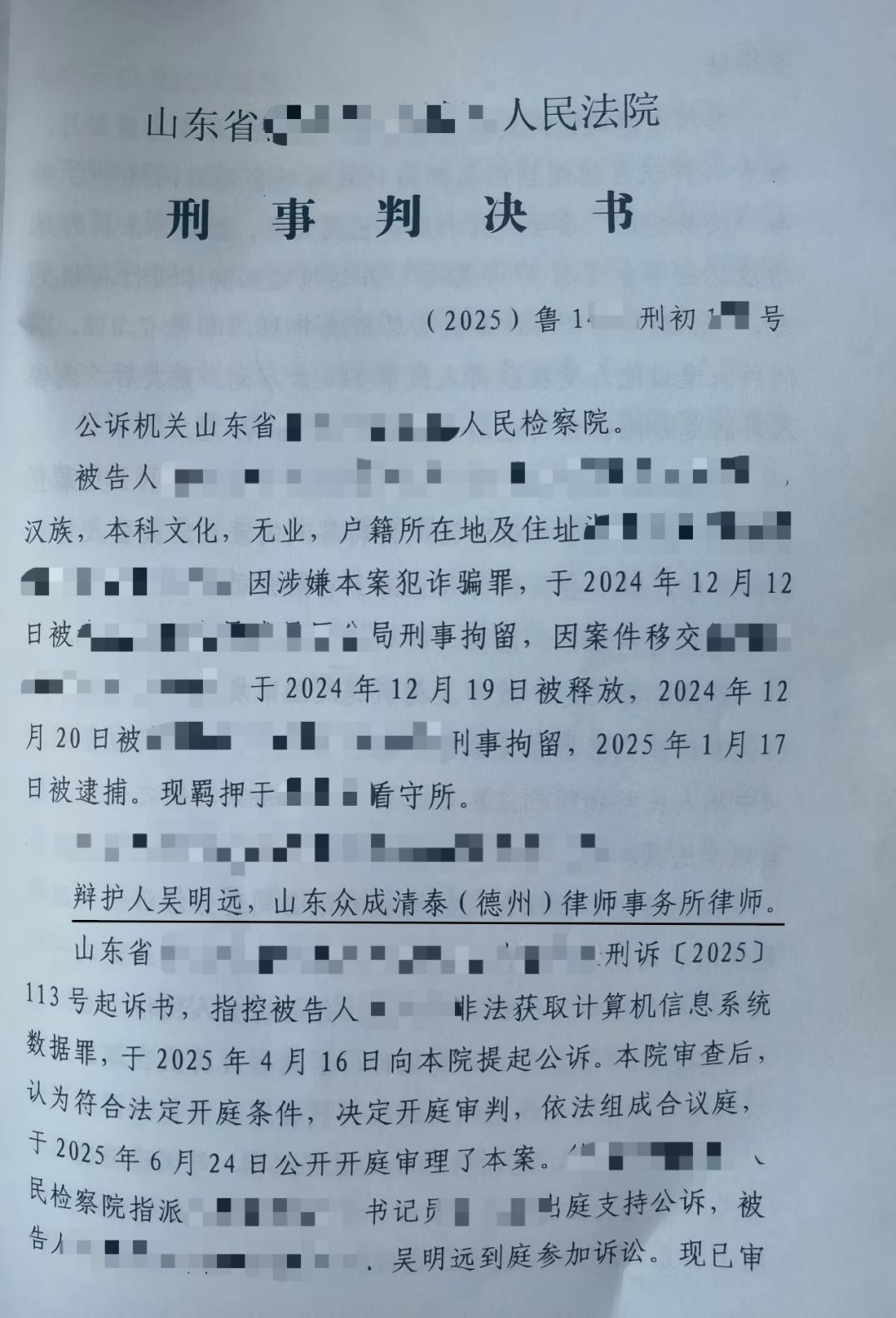公诉机关指控,2024年3月至8月,被告人J在某公司的网络平台参与“交易挖矿”活动,利用父母、姐姐等亲属的身份信息在平台注册37个账号,并运用电脑脚本进行高频交易,非法获取该公司计算机信息系统中18900余亿HTX,期间被告人J通过他们变现获得人民币520余万元。案发后被告人J退赔被害公司人民币450万元。 公诉机关认为被告人J违反国家规定,采取技术手段获取计算机信息系统数据,情节特别严重,应当以非法获取计算机信息系统数据罪追究其刑事责任。(内容有删减)。并提出量刑建议书,建议判处被告人J有期徒刑四年八个月并处罚金人民币十五万元。 吴明远律师介入本案时,案件已经进入法院审判阶段,并且被告人在审查起诉阶段签署了《认罪认罚具结书》。接受委托后,因本案案情复杂且属于新型犯罪,山东众成清泰(德州)律师事务所刑事法律事务部迅速组织团队成员对案件进行集体研究。经深入研究,参会团队成员共同在案件的程序上、实体上找到案件存在的问题,并确定了整体的辩护方案。 确定辩护方案后,辩护律师实地到被害公司注册地进行走访,确定被害公司在注册地没有办公场所,基于此种情况,辩护人向法院提交了《管辖权异议》。并同时提交了《调取证据申请书》《证人出庭作证申请书》。并多次前往法院、检察院与主办法官、检察官交流案情,并陈述辩护意见。 在开庭以前,经过多次与检察官、法官交锋,最终公诉机关调整了对被告人的量刑建议,对被告人可以适用缓刑。法院据此依法作出判决。