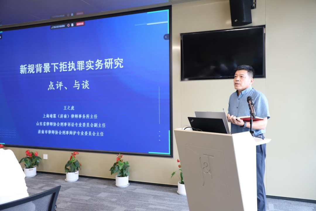 众成清泰副主任、执行业务中心主任何泽锋为会议致开幕辞,向与会嘉宾表示诚挚欢迎。他表示,在新规实施背景下深化拒执罪研究,对实现“以刑促执”机制、破解执行实务难题具有重要现实意义。 众成清泰副主任、刑事业务中心主任孟凡湖作题为《拒执罪新规视角下律师办理执行业务的“攻”与“防”》的主旨演讲,从律师执业实操出发,结合最新规范性文件,深入解析执行业务中的实务策略构建与风险防控体系。 左右滑动查看更多 研讨环节中,多位知名律所专家依次发表主题分享。北京市盈科(济南)律师事务所高级合伙人邢波、上海段和段(济南)律师事务所监事会主席顾广义、山东里手律师事务所高级合伙人李春阳、上海靖霖(济南)律师事务所执行主任王景霞、众成清泰(西海岸)律师事务所执行主任王恩国、众成清泰(济南)律师事务所律师司立双及高级合伙人王君杰、李坤等,分别从案例实证分析、风险前置预防、证据链构建、辩护策略优化、刑事控告路径、刑民交叉处理等多元维度,对拒执罪实务疑难问题展开深度阐释。 会议收官阶段,山东大学法学院教授、博士生导师黄士元与上海靖霖(济南)律师事务所主任王之虎对嘉宾发言进行专业点评与系统总结,进一步提升了会议的学术厚度与实务指导价值。 本次研讨会内容务实、研讨深入,为与会者提供了高质量的专业交流契机,也为律师处理拒执类案件明晰了操作路径与方法体系。未来,众成清泰将持续深耕专业,积极搭建专业交流平台、汇聚行业智慧,为破解执行难题、完善司法保障机制贡献专业力量。