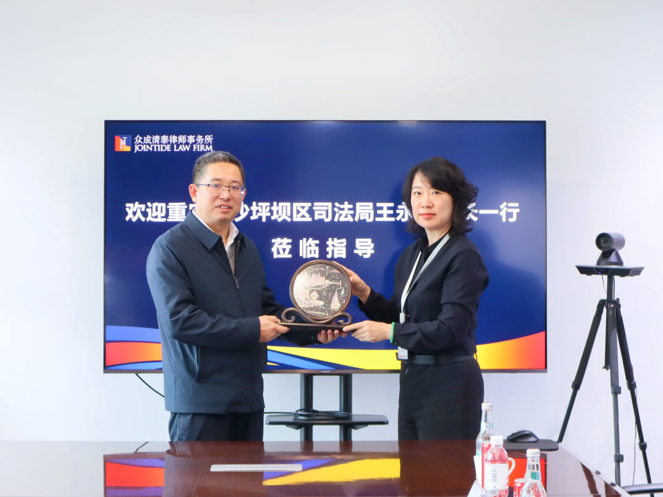 座谈交流环节,杨电科处长代表青岛市司法局对王永刚局长一行的到来表示热烈欢迎。他指出,此次交流为两地在探索涉外法律服务领域的务实合作、实现协同发展提供了平台,希望以此为契机,推动双方在涉外法律服务资源互通、高端人才共育及国际商事争端解决创新等方面开展更深层次合作,共同为企业扬帆出海保驾护航。 林扬主任就众成清泰的发展历程、业务架构、专业队伍建设以及规模化、专业化、国际化的战略布局进行了系统介绍。随后重点阐述了众成清泰在推动全国律所协同发展方面的战略思考与实践。她指出,众成清泰致力于与全国志同道合的律所伙伴共同打造一个更具韧性、更富创新活力的法律服务生态圈,从而为我国企业的高质量发展提供坚实可靠的法律后盾。 蓝斐主任聚焦于律所的国际化发展,详细汇报了涉外法律服务的业务特色、经典案例以及在搭建跨境法律服务平台方面的实践与探索,特别介绍了与泰华商恒联营所在涉外业务领域的协同创新模式,即泰华商恒联营所与众成清泰国际业务中心的深度协同,实现了内地资源与跨境服务能力的有效对接。 在互动交流环节,与会人员围绕涉外法律服务人才培养、跨区域律所管理、国际商事争议调解等方面的议题展开了热烈而深入的探讨。 会议最后,王永刚局长对市司法局与众成清泰的热情接待与专业分享表示感谢,对律所在涉外法律服务领域取得的成就给予高度评价,并在交流中详细介绍了重庆市及沙坪坝区的司法环境与法律服务发展现状。他指出,此次交流为两地法律服务行业,特别是涉外法治建设的协同发展开辟了新空间,期待未来能建立长效沟通机制,共同为服务国家高水平对外开放战略贡献法治力量。 交流结束后,青岛方向重庆代表团赠送了特色纪念品,为此次访问交流画上圆满句号。 此次座谈交流,为青岛与重庆两地的思维深度碰撞提供了宝贵的交流机会,更为未来在更广领域、更深层次的协作奠定了坚实基础。以此为序章,众成清泰也将继续深化跨区域协作,精进专业能力,以专业法律实践积极服务国家对外开放新格局。