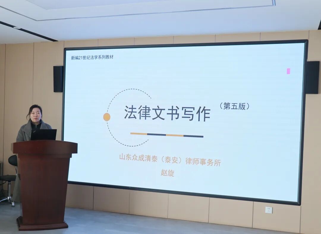 为持续深化法学教育与法律实务的深度融合,近日,众成清泰泰安所为山东农业大学公共管理学院量身打造的《法律文书写作》实践课程圆满落下帷幕。课程延续优质师资团队,由我所于学东主任担任课程负责人并亲自授课,资深律师郭长满、赵旋、张秀参与主讲,为山东农业大学的硕士研究生们带来了一场兼具专业性与实用性的法律文书写作盛宴。