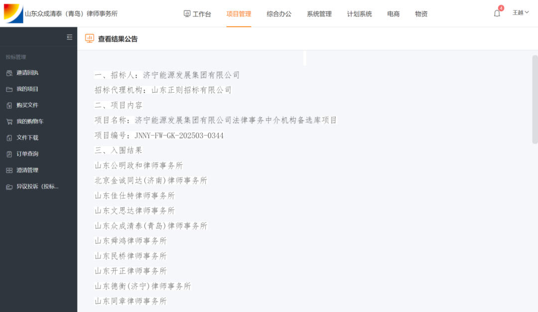 3月31日,众成清泰青岛所李琛团队成功中标济宁能源发展集团有限公司法律事务中介机构备选库项目,系青岛地区唯一入选律所。
