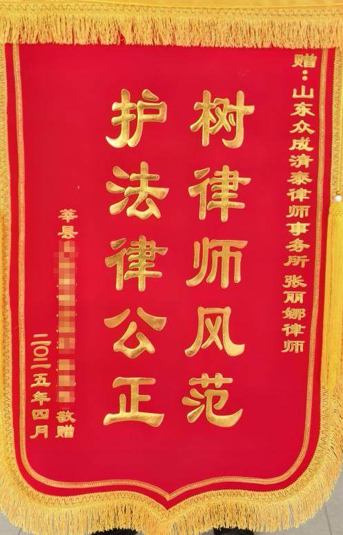 近日,众成清泰(聊城)律师事务所杨少彬、王欢欢、张丽娜律师承办的张某因与他人合作引发的分割共有物、民间借贷纠纷案件,最终顺利调解结案,真正做到案结事了,切实维护了当事人合法权益,取得了良好的法律和社会效果,当事人特赠锦旗致谢。
