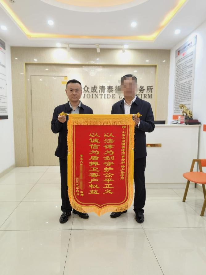 案件结束后,张某专程前往律所赠送锦旗,以表谢意。红彤彤、金灿灿的锦旗,不仅是对律师工作的认可与信任,更是对律师的激励与警示,在以后的代理过程中,我们定将不忘初心,用专业、真诚、负责的态度,认真处理每一个案件,为更多客户提供优质、高效的法律服务!