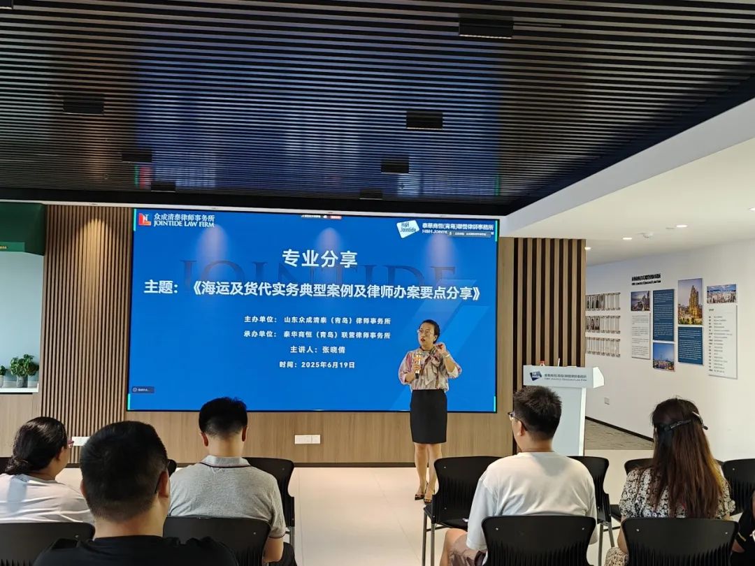 6月19日,泰华商恒(青岛)联营律师事务所张晓倩律师在国际商事法律服务会客厅,举办了一场主题为《海运及货代实务典型案例及律师办案要点分享》的专题讲座,吸引了众多关注。