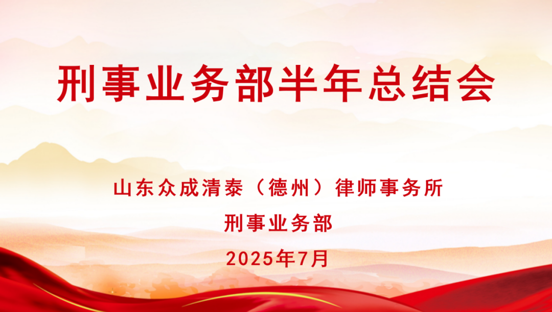7月1日,山东众成清泰(德州)律师事务所刑事业务中心举办2025年上半年工作总结会议。本次会议由刑事业务中心主任吴明远律师主持,团队负责人梁彬律师、翟秀娟律师及业务中心全体律师参加。会议系统回顾了上半年度工作成效,深入剖析业务实践,并对未来工作进行前瞻性部署。