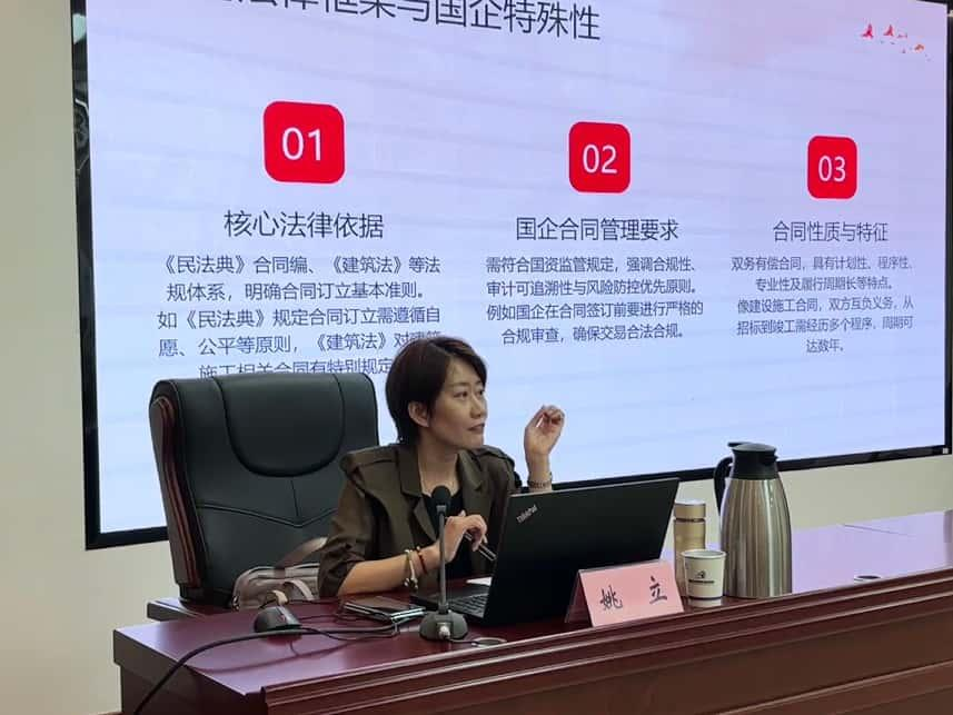 为助力顾问单位提升建设施工合同全流程风险管理能力,防范法律纠纷,保障国有资产安全,8月1日,山东众成清泰律师事务所高级合伙人、德州所青工委主任姚立律师受德州天衢建设发展集团有限公司邀请,为各直属公司班子成员及法务负责人、集团相关科室负责人讲授《国企建设施工合同风险防控与合规管理》。