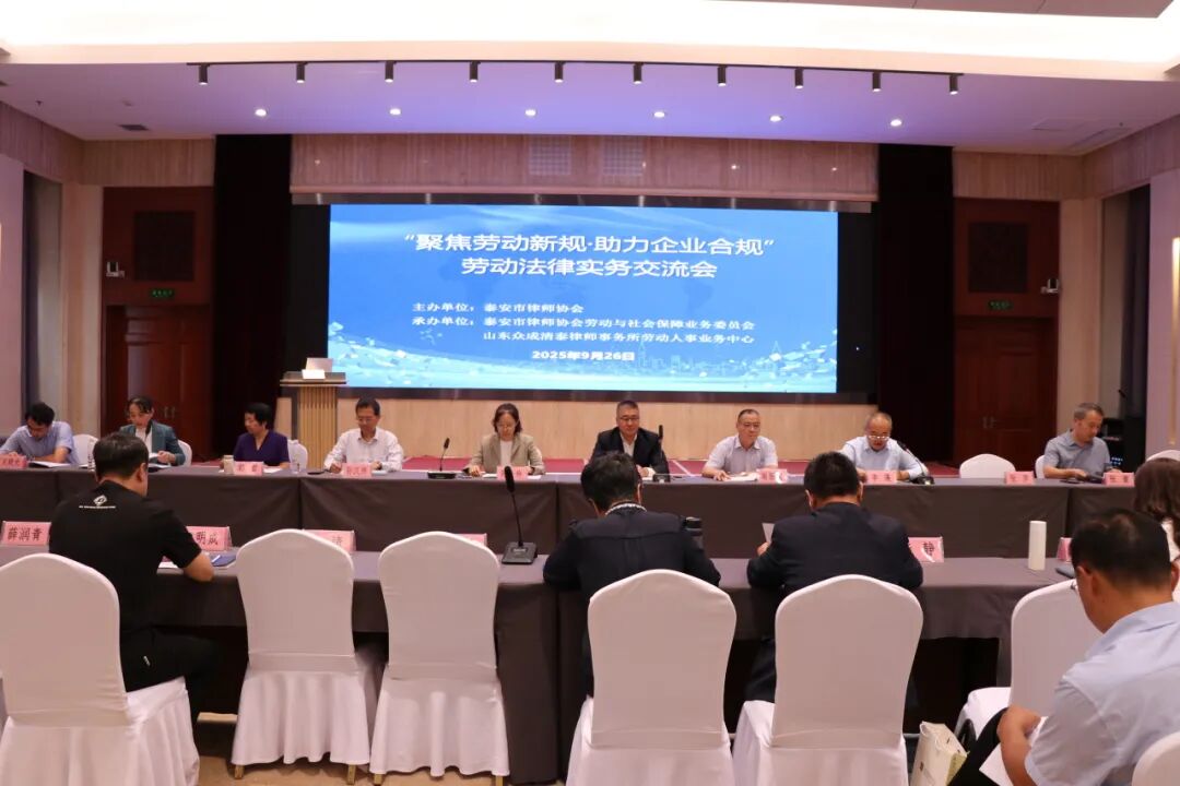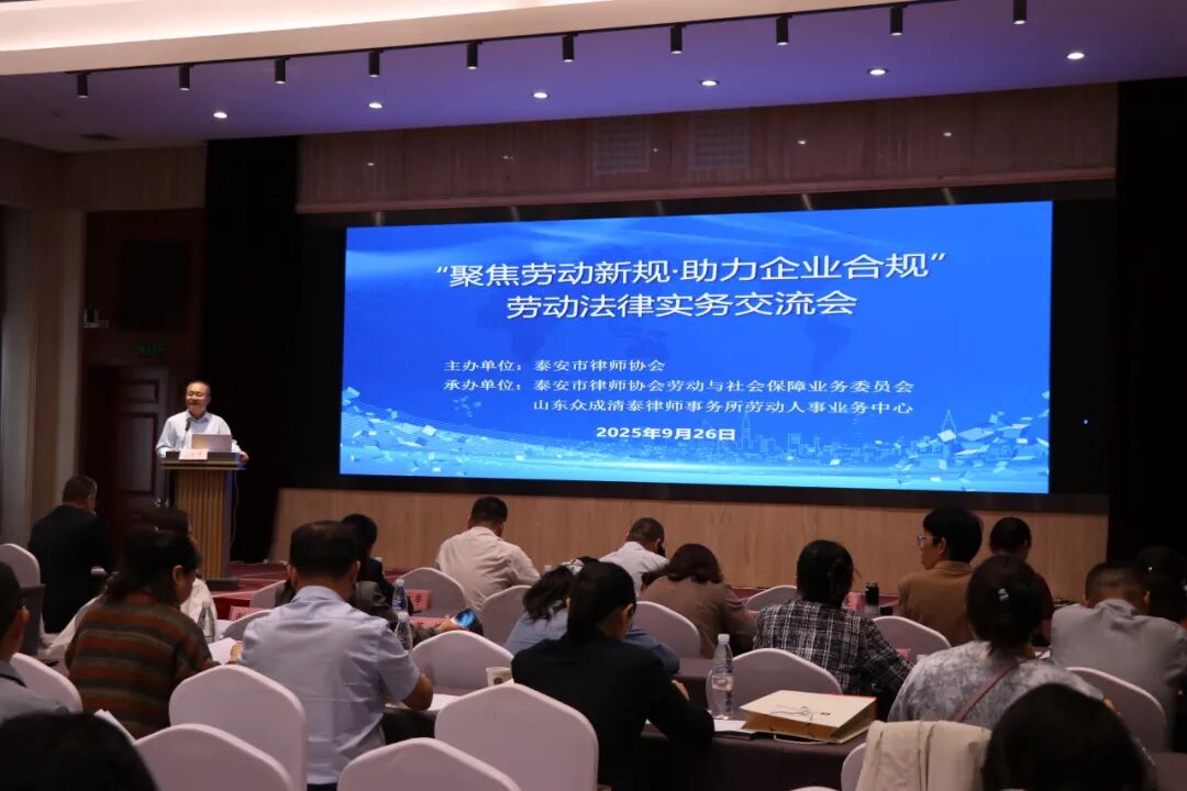 2025年9月26日,由泰安市律师协会主办,众成清泰律师事务所劳动人事业务中心与泰安市律师协会劳动与社会保障业务委员会联合承办的“聚焦劳动新规・助力企业合规”劳动法律实务交流会在泰安市丽景广场酒店八楼泰山厅隆重举行。