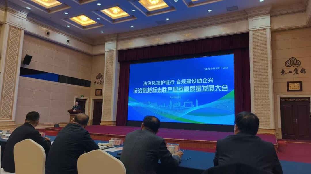 11月19日,威海市举办2025年第四季度“威海企业家日”活动,并召开法治赋能标志性产业链高质量发展大会,市委书记闫剑波出席会议并讲话,副市长袁志勇、张刚,市法院院长刘辉,市检察院检察长王常青出席。会上,发布了《威海市标志性产业链法治服务专项行动实施方案》,威海市标志性产业链法治服务联盟正式启动。