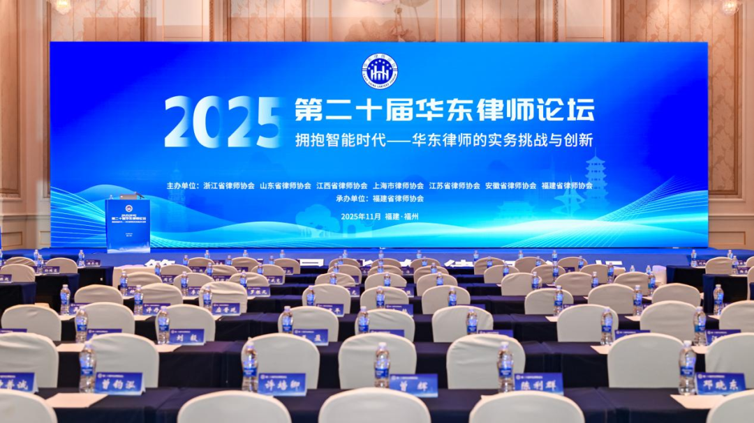 11月22日至23日,由浙江省律师协会、山东省律师协会、江西省律师协会、上海市律师协会、江苏省律师协会、安徽省律师协会、福建省律师协会联合主办的第二十届华东律师论坛在福建省福州市举办。本次论坛主题为“拥抱智能时代——华东律师的实务挑战与创新”,来自华东六省一市律师协会的会长、副会长、秘书长、副秘书长以及律师代表160余人参加论坛。中华全国律师协会副会长郑金都,福建省司法厅党委委员、副厅长黄洪旺,福建省律师协会会长于宁杰出席开幕式并致辞。