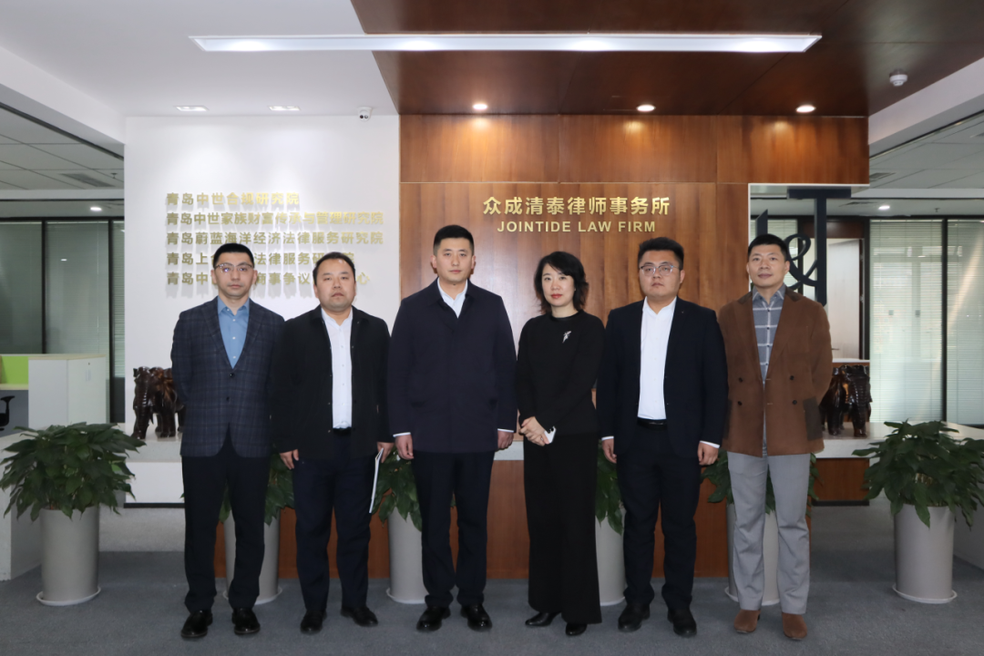 众成清泰青岛所主任林扬,青岛所党委副书记、众成清泰副主任李琛,青岛所党委委员、众成清泰副主任解洪广等热情接待,并陪同王栋云主任一行参观了律所办公区域及国际商事法律服务会客厅,对众成清泰的发展历程、党建情况、专业布局等基本情况进行了介绍。