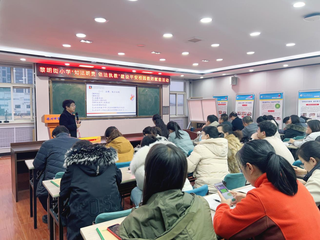 为进一步提升教师法治素养,推动平安校园建设,12月17日下午,山东众成清泰(德州)律师事务所合伙人刘爱菊律师应德州市黎明街小学邀请,为全体教师带来了一场题为《依法执教 建设平安校园》的专题法治讲座。
