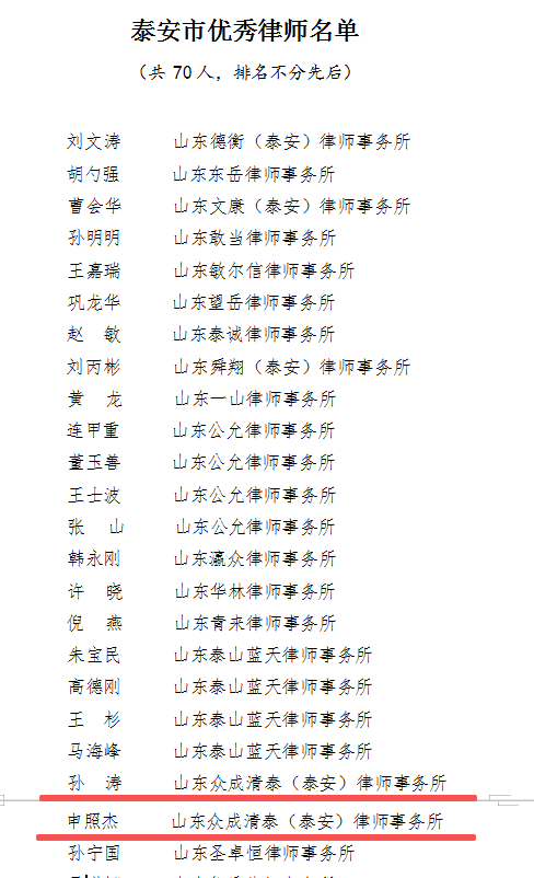 喜迅 | 众成清泰泰安所申照杰、孙涛律师荣获“泰安市优秀律师”称号