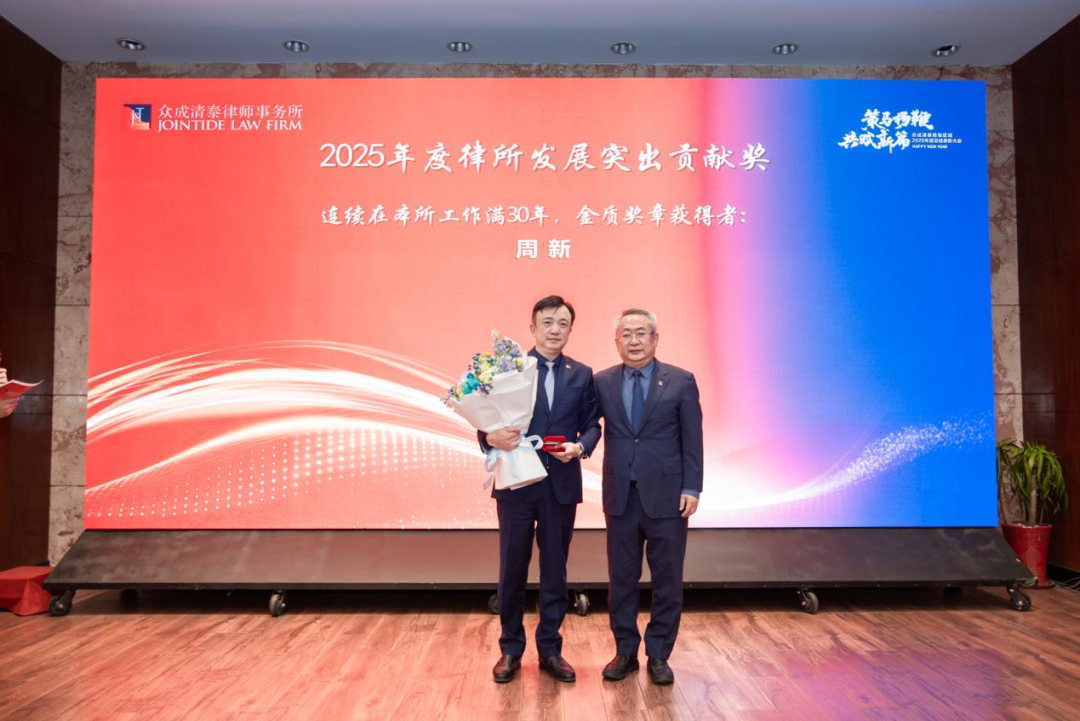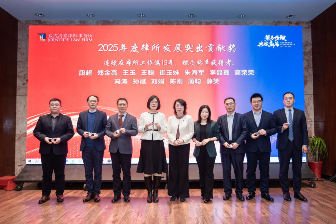 在众成清泰蓬勃发展的岁月长河中,有这样一群人与律所并肩前行。他们不仅是发展的见证者,更是创新的参与者。他们始终秉持初心、勇担使命、勤勉尽责、主动作为——他们,便是陪伴众成清泰历经十五载或三十载春秋的同行者。本次大会设立“律所发展突出贡献奖”纪念章颁发环节,向这些与众成清泰同行的奋斗者致以崇高礼赞。