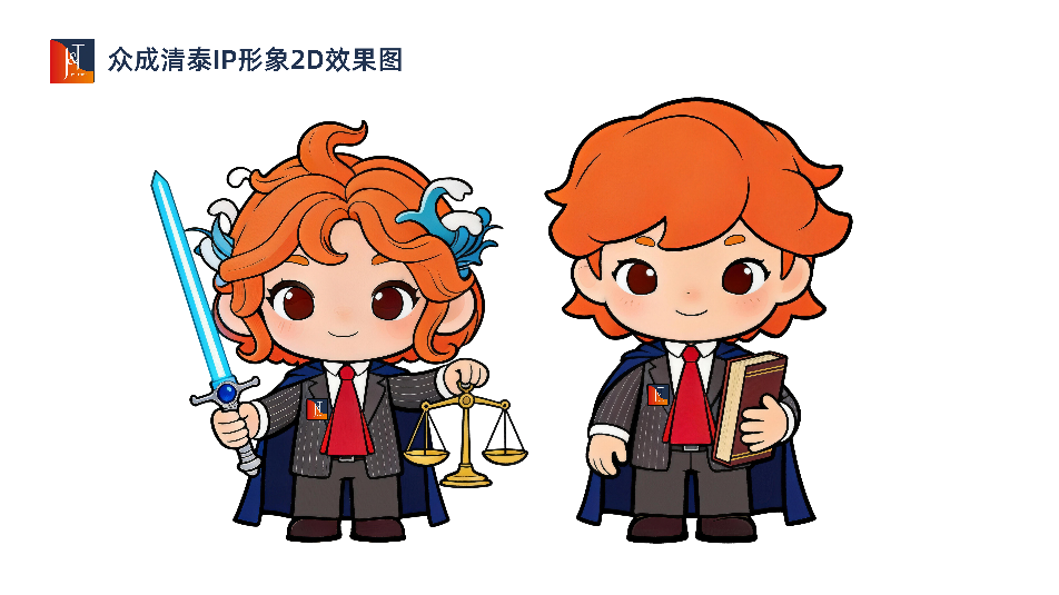 “成成”与“清清”的设计独具匠心,蕴含着丰富的寓意。“成成”作为专业的代名词、责任的践行者,手持法典,象征着众成清泰深厚的专业沉淀以及对客户托付的敬畏之心。正如对众成清泰的律师而言,每一个案件都是一份沉甸甸的责任,他们以严谨审慎的态度,在细节中彰显专业素养,为客户的合法权益保驾护航;“清清”则是活力的传递者、突破的探索家,她手中的剑代表着守护正义的坚定锐气,天平则象征着公正与平等。在法律服务的征程中,众成清泰不仅坚守正义的底线,更以创新的思维和无畏的勇气,积极探索数智化服务等新领域,不断打破行业边界,为客户提供更高效、前沿的法律服务。