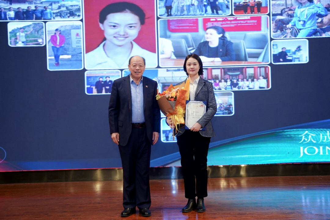 韩洪钢主任向田文华主任颁布三十年纪念奖