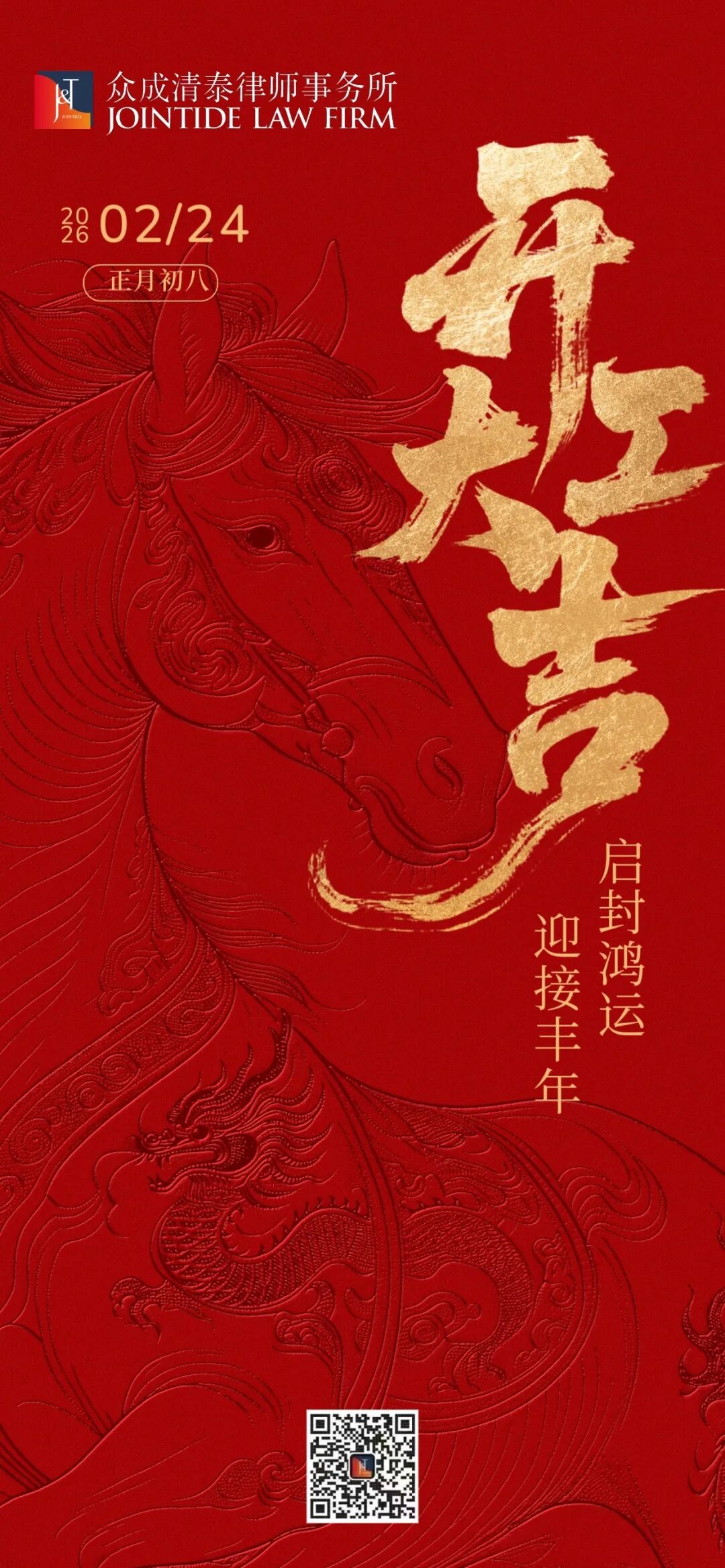 宫立新主任发表开工致辞,向全体同仁致以新春的美好祝愿。他强调,马年当弘扬"马的精神"——以忠诚担当为底色,以拼搏奉献为自觉。2026年既是"十五五"规划的启航之年,亦是众成清泰新五年战略周期的关键起点。青岛区域将紧紧围绕"强分所、重创新、争一流"的工作主线,在总所战略部署中开拓创新。愿全体同仁以一马当先的魄力、龙马精神的姿态,践行马到成功的承诺,凝心聚力、共谱华章!