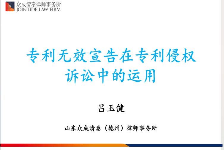 会上,吕玉健律师以《专利无效宣告在专利侵权诉讼中的运用》为主题,结合实务案例拆解了专利无效宣告的适用场景、操作要点及核心作用。 他指出,在专利侵权诉讼中,全面覆盖原则是判断侵权的重要标准。同时,他结合近年来办理的有关专利无效的真实案例,深入剖析了专利无效宣告的检索工作重要性。吕律师还提到,许多当事人对知识产权管理不到位,如不规范发明交底、申请日前已自行公开等问题,会直接影响案件走向。为大家提供了清晰的参考。 随后,张康乐律师带来《多角度剖析典型案例的实务价值》专题分享,从案件办理思路、法律适用、风险防控等维度,解读了典型案例的深层逻辑与实践指导意义。 - 张某华民间借贷案:通过选择性诉讼,为同类民间借贷纠纷提供了清晰思路; - 青岛某公司追加股东案:从代理案子、检索类案、论文、法律服务产品四个维度,实现“从一个案子举一反三”,拓展了案件价值边界; - 马某工伤赔偿案:一个法律援助案件,通过精细化办案,将单一案件转化为“奖项收割机”,印证了“办好一个案子,就能打开一片市场”的实务智慧。 本次培训干货满满,既有专利实务的深度拆解,又有典型案例的多元解读。参与律师纷纷表示,通过本次学习,不仅精准掌握了专利无效宣告的实务技巧,更学会了从个案中提炼可复用的办案经验,对提升自身专业能力具有重要指导意义。未来,我所将持续搭建学习交流平台,推动所内专业资源共享与实务能力共建,助力律师在专业化发展道路上不断精进。