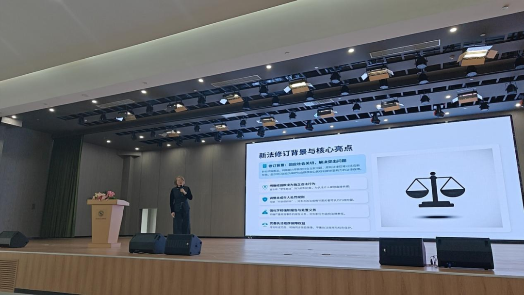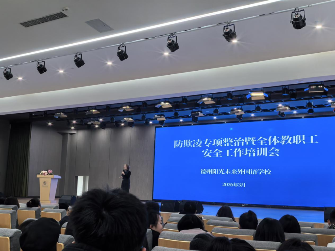 为增强教职工法治意识,筑牢校园安全防线,2026年3月4日,山东众成清泰(德州)律师事务所合伙人高宗丽律师受邀走进德州阳光未来外国语学校,为全体教职工带来了一场以“《治安管理处罚法》新规解读与校园防欺凌实践”为主题的普法讲座。