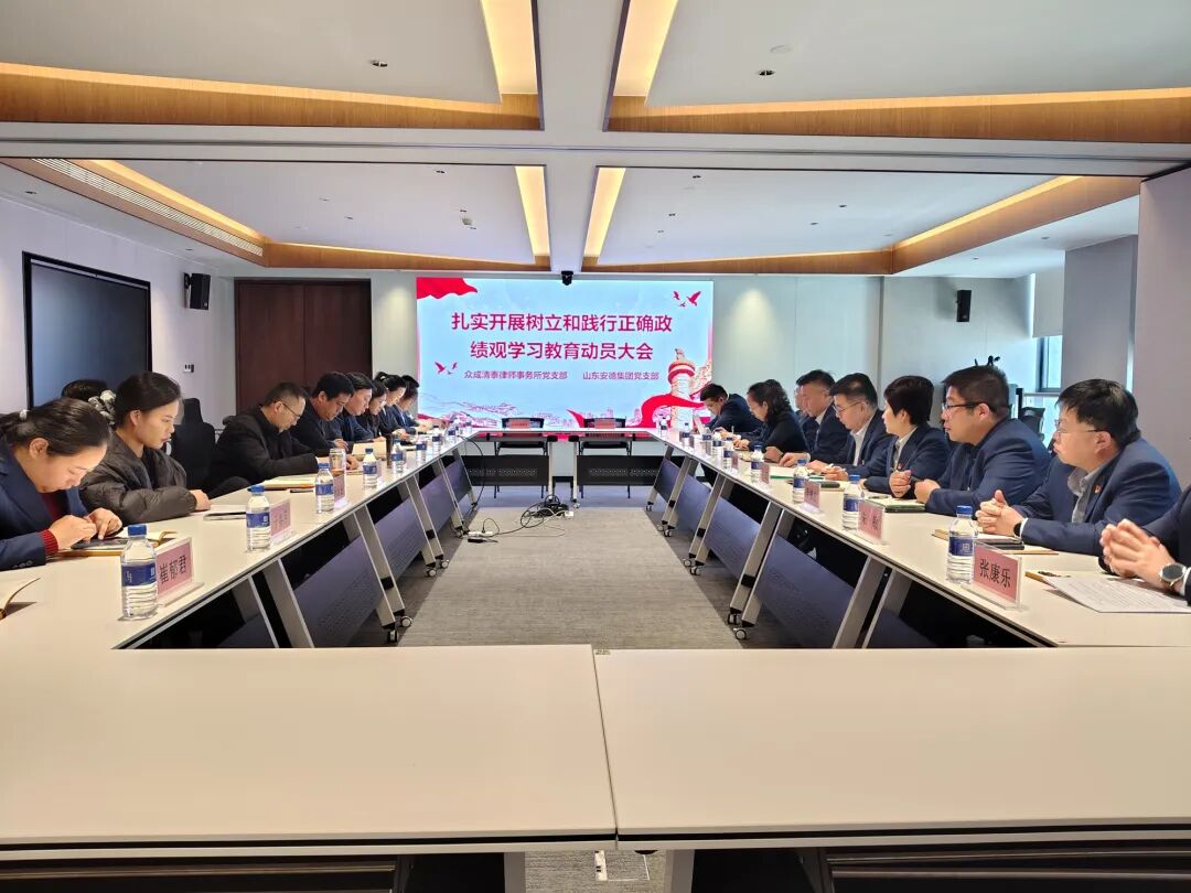2026年3月12日,山东众成清泰(德州)律师事务所党支部与山东安德投资发展集团党支部联合召开“树立和践行正确政绩观”学习教育动员大会。众成清泰德州所党支部书记魏金辉、党支部副书记李建华、翟秀娟,安德集团党支部书记王子璇等双方党员代表及业务骨干参加会议。