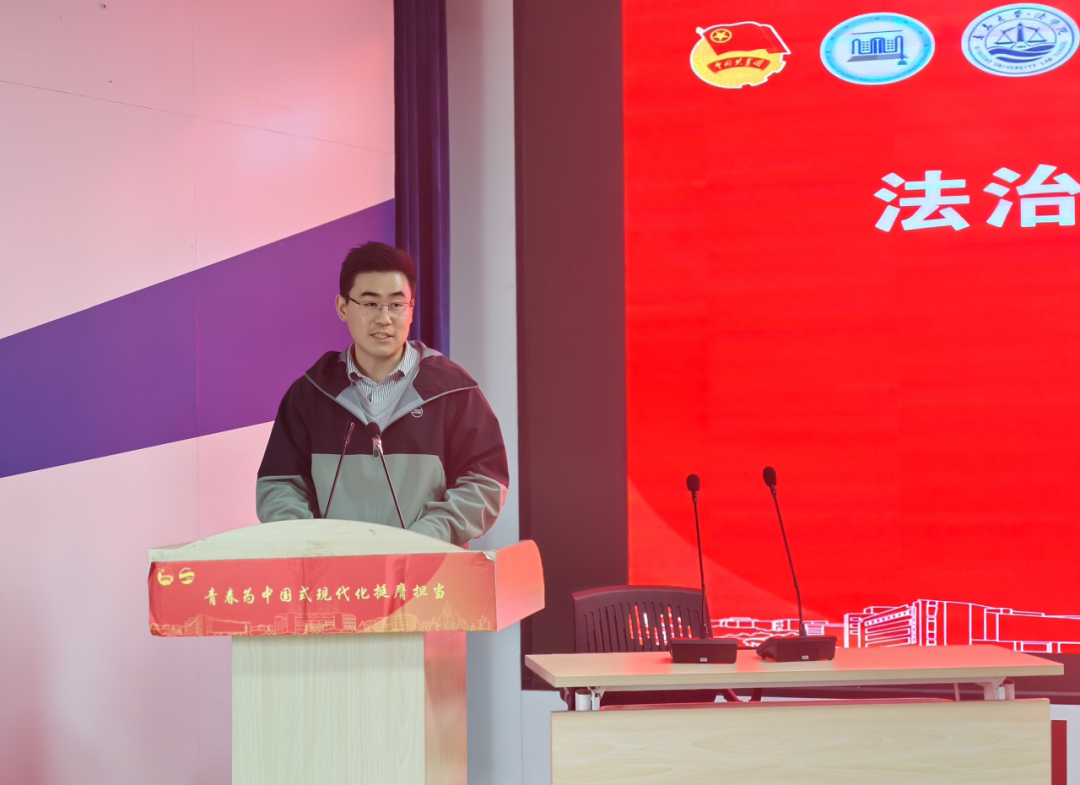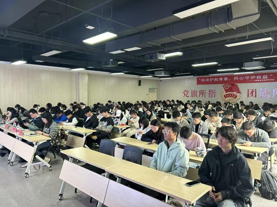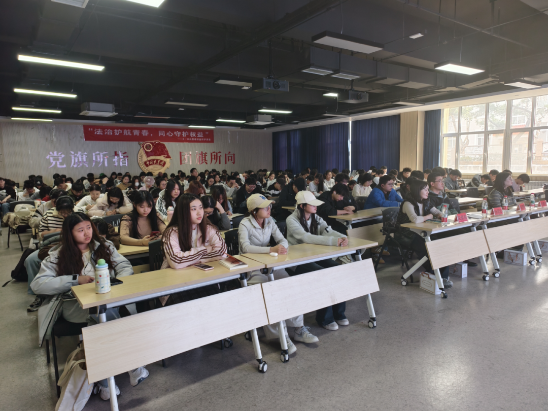 团委副书记杨国庆、校团委合作发展部部长朱雅萌、法学院党委副书记庞在辛、法学院辅导员白嘉宁、山东众成清泰(西海岸)律所王恩国律师出席活动。来自各学院的学生代表、校“权小益”大学生权益维护中心工作人员、法学院学生会及法学会成员等百余人共同参与,现场座无虚席,气氛热烈。