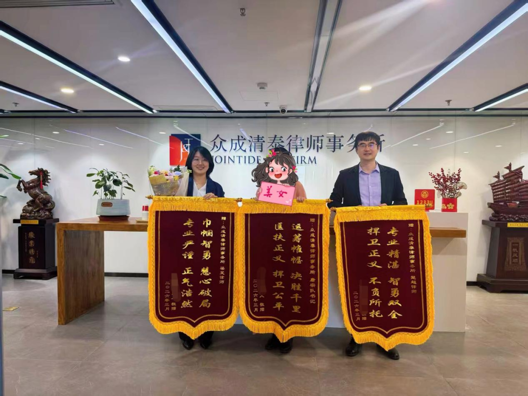 2026年4月2日,山东众成清泰(城阳)律师事务所收到了一份特殊的“礼物”——当事人专程送来锦旗与鲜花,同时向青岛市律师协会及本所寄来一封情真意切的感谢信。锦旗上,“巾帼智勇 慧心破局”“捍卫正义 不负所托”等烫金大字,凝聚着一个家庭对梁笑律师、楚超律师最深的谢意。